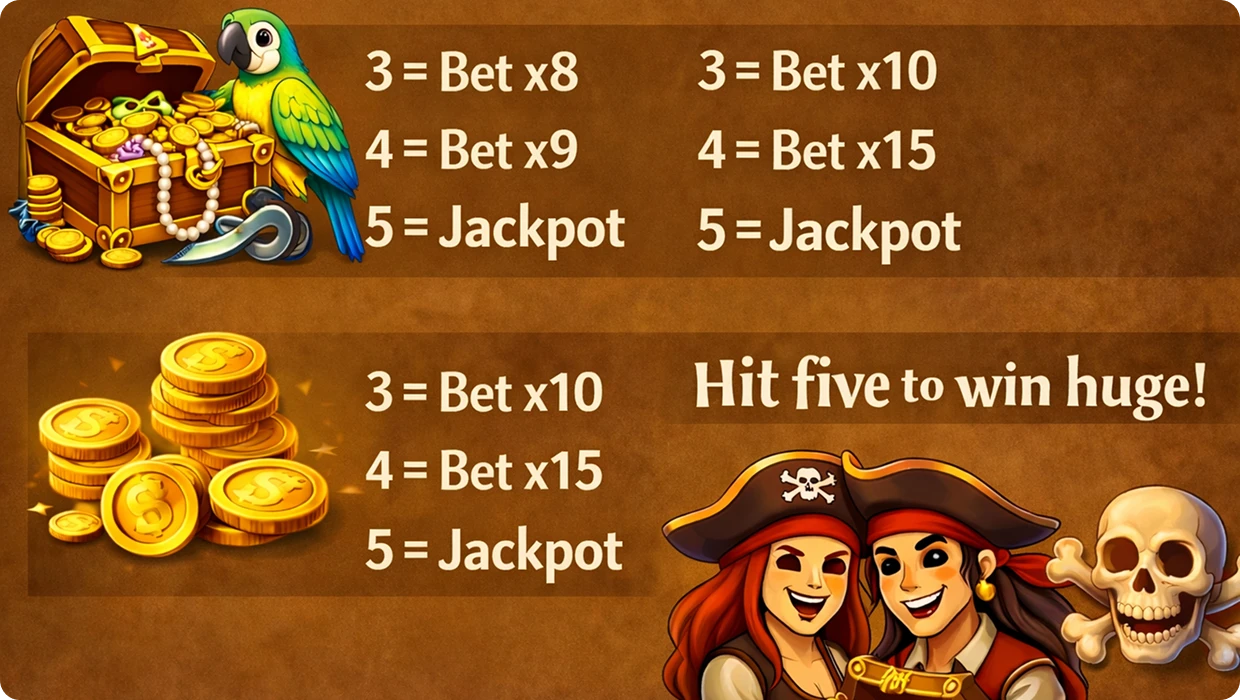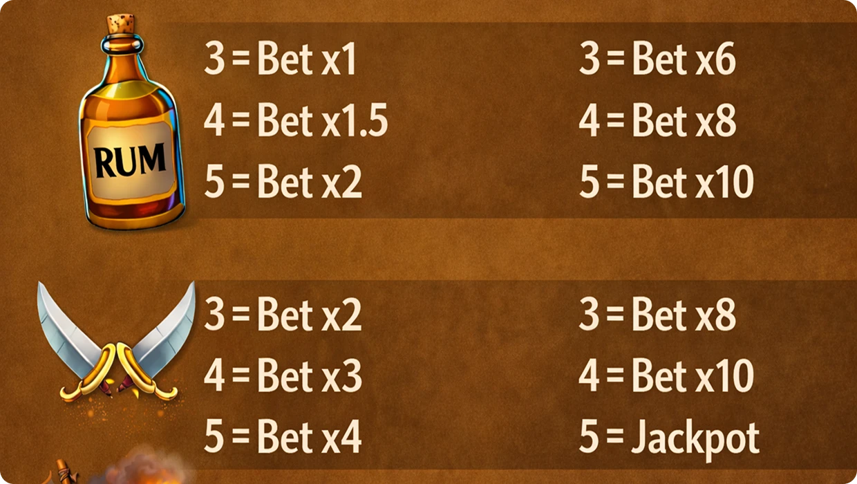 Pirate flags, rum bottles, and treasure chests – High-value symbols that’ll fill your hold faster than a ship plunder!